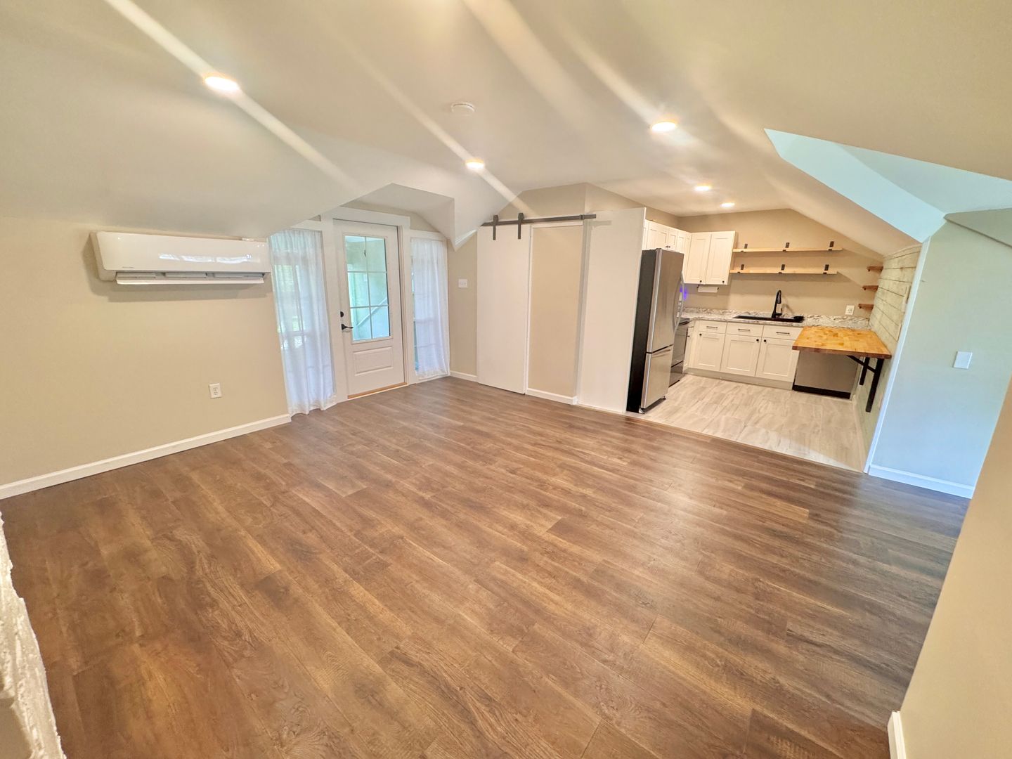 This recently renovated upper level studio unit is just minutes from Downtown Statesville, and consists of; an open-plan living space, full kitchen, full bathroom, and a large closet. Amenities include a private sun room, off-street parking, and a shared fire pit area in the backyard. Lease includes stove, refrigerator, OTR microwave, washer and dryer. Utilities included in lease are water and sewer. Tenant pays electricity. Unit is equipped with central air and heat.