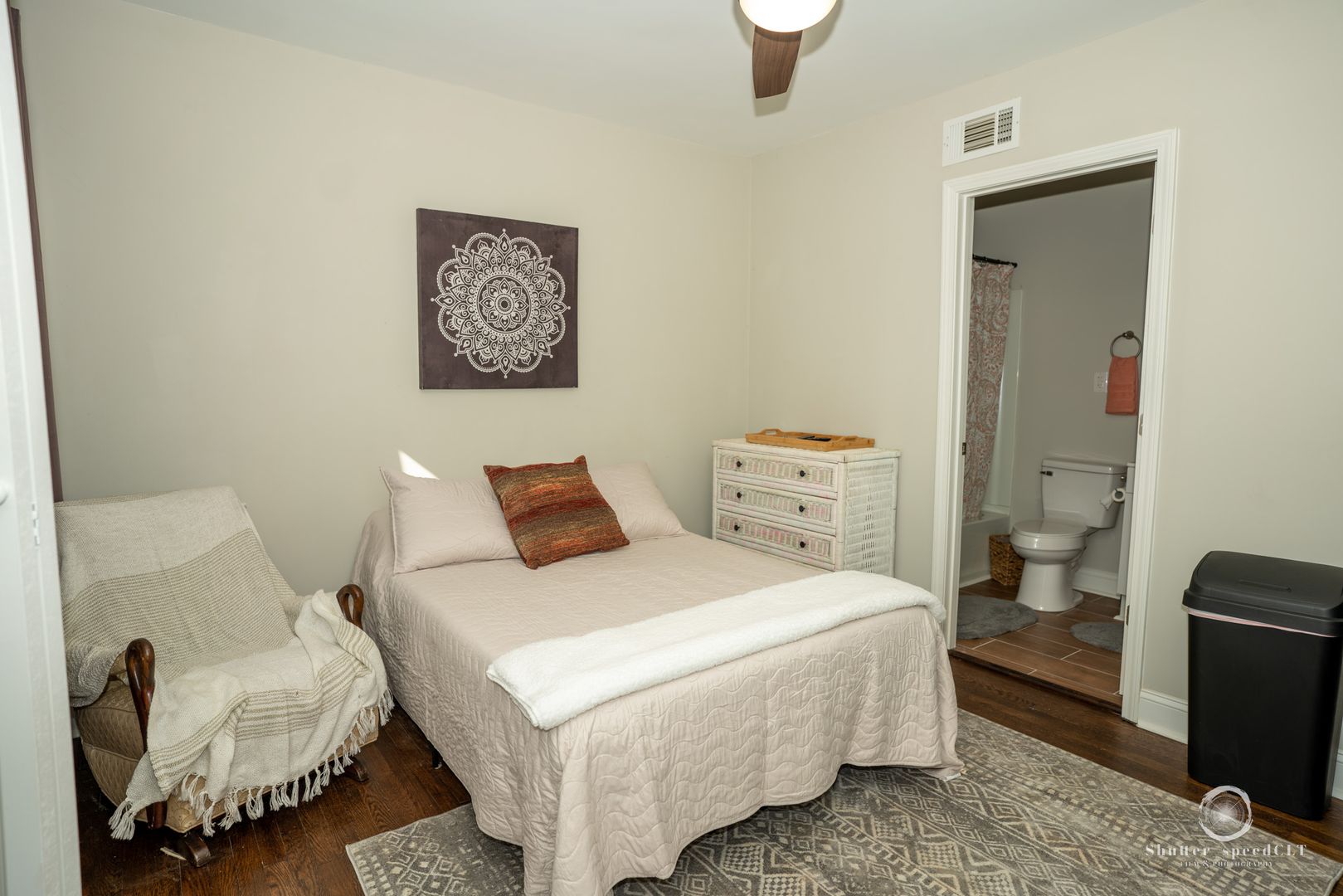 This newly renovated home features 4 bedrooms. Each unit contains a private bedroom and bathroom. This unit comes furnished with a bed, dresser, sitting chair, flat-screen television, mini-fridge and microwave. This home offers a shared kitchen and laundry conveniently located and accessible to all rooms.